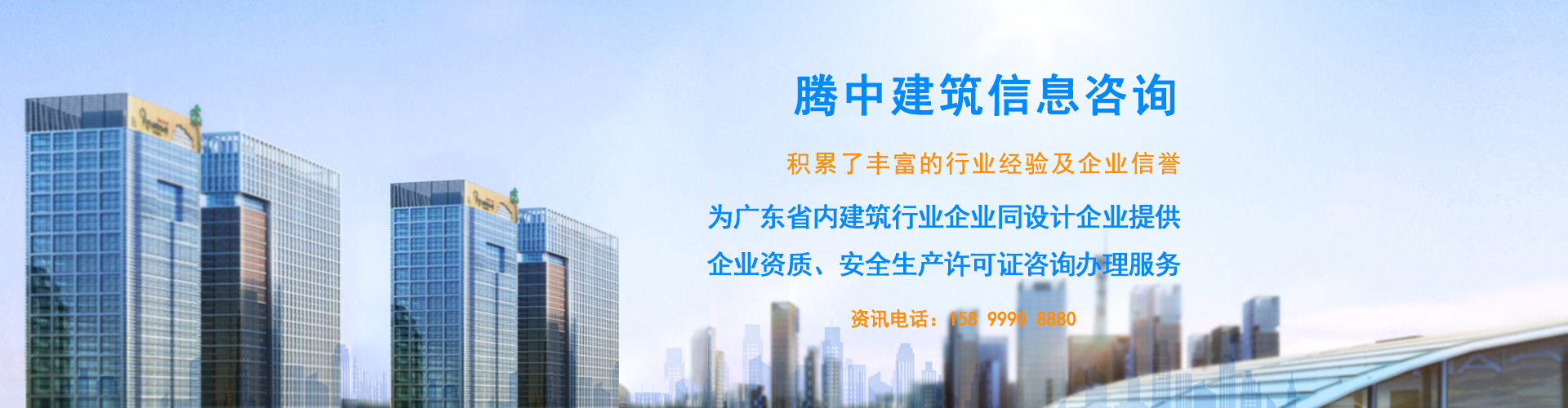 東莞市騰中建筑信息咨詢有限公司,位于東莞市住房和城鄉(xiāng)建設(shè)局附近。公司致力為廣東省內(nèi)建筑行業(yè)企業(yè)同設(shè)計企業(yè)提供企業(yè)資質(zhì)、安全生產(chǎn)許可證咨詢辦理服務(wù)。積累了豐富的行業(yè)經(jīng)驗及企業(yè)信譽(yù)。我們的專業(yè)、誠信和高效率, 得到了建筑行業(yè)客戶的一致肯定和好評。 經(jīng)營理念:受人之托、忠人之事!企業(yè)宗旨:信譽(yù)至上、誠信務(wù)實!合作觀:互信鑄基石,合作創(chuàng)共贏! 選擇我們的理由:100%包通過!